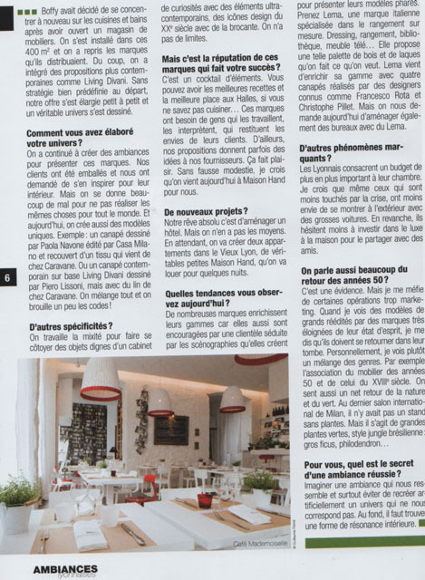 MAISON HAND Lyon - La Presse en parle : Mag2 Lyon - Ambiances N°1 - portrait Maison Hand